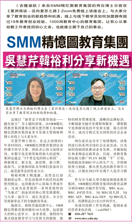SMM 精忆图教育集团,放眼明年实现 3 愿景