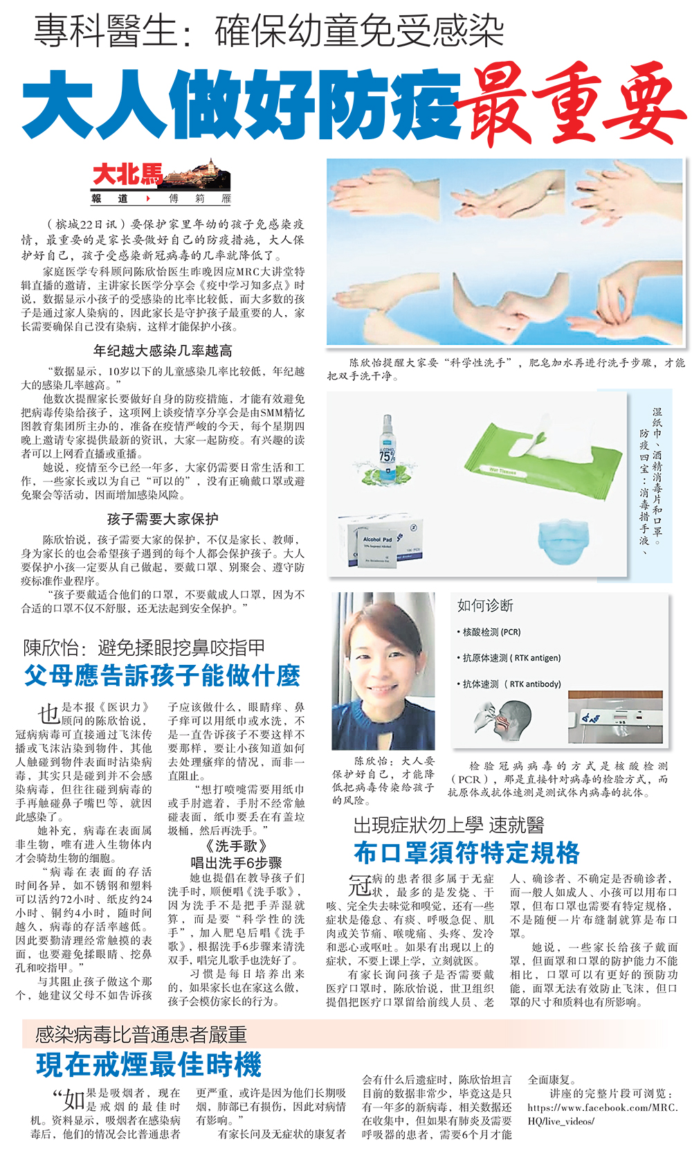 专科医生:确保幼童免受感染,大人做好防疫最重要